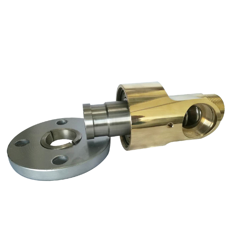 冷却水旋转接头空心轴通过螺纹或法兰直接与辊筒相连,并采用了平衡式密封设计,使工作压力对密封环两端产生的压力几乎相等,从而有效地降低了密封载荷对密封端面的磨损,延长了使用寿命;滚动轴承对空心轴的支承使旋转扭矩大为降低,运转灵活,加上体积小,重量轻,因此,可适用于较高转速条件下。另外,壳体上设有观察孔,通过它可观察密封的泄漏和磨损情况。设有注油孔时,请定时加注润滑油。